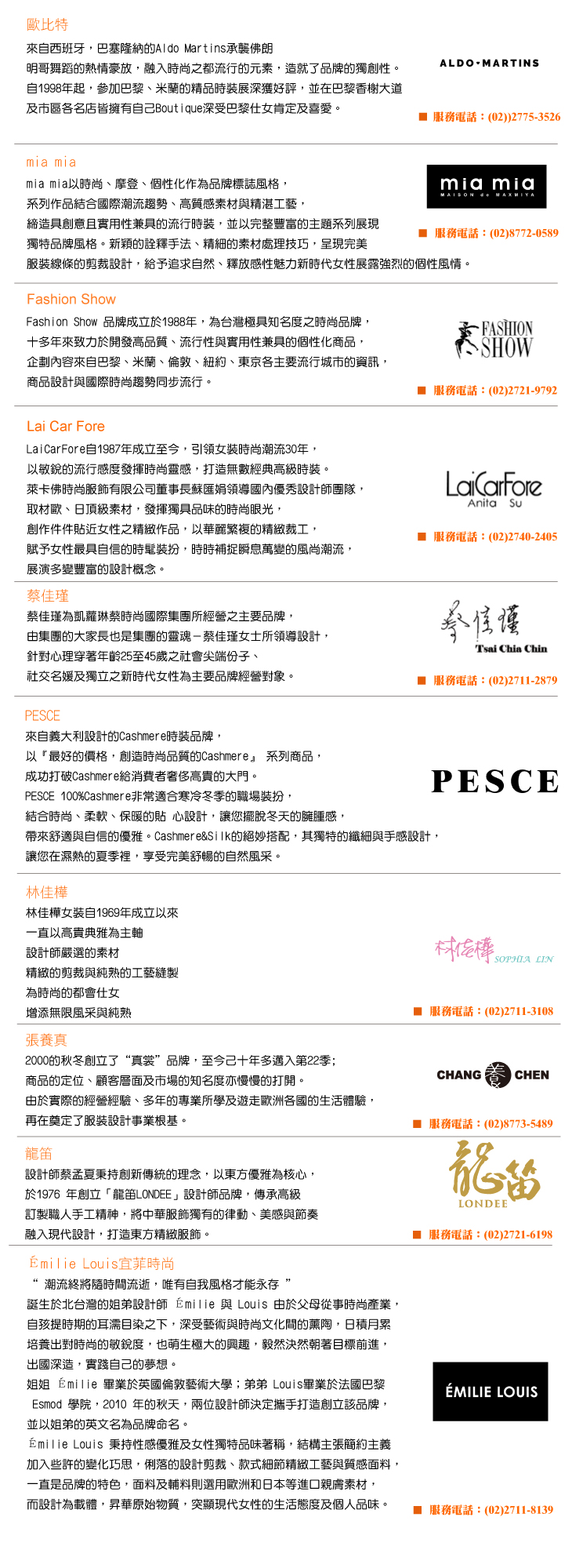 首頁 樓層簡介 5F 時尚粉領館